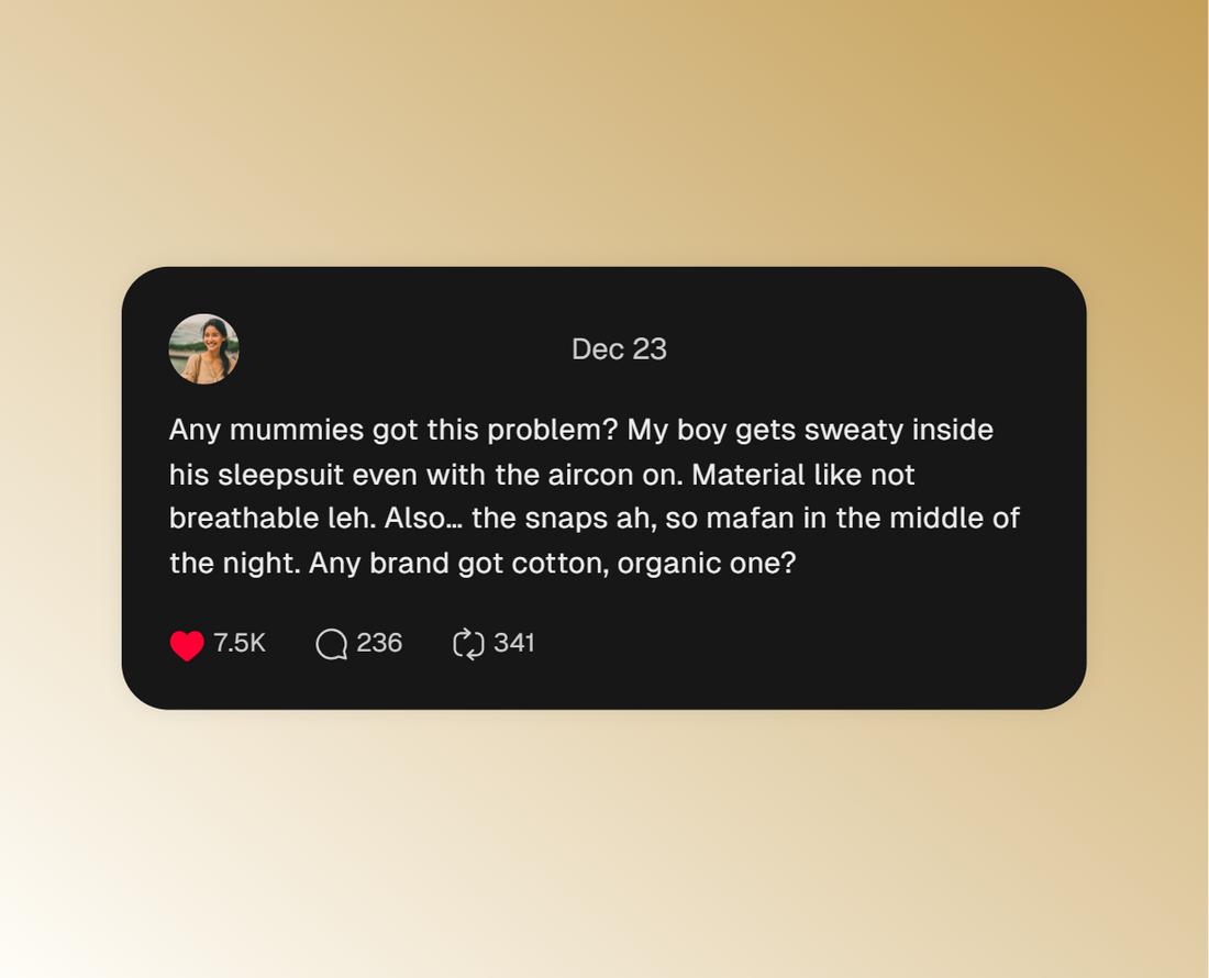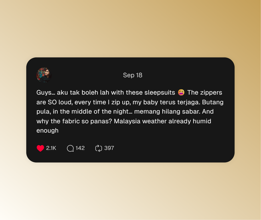 Across Malaysia and Asia, parents share the same quiet frustrations: zippers that scratch, snaps that misalign and nights disrupted by the smallest sound.